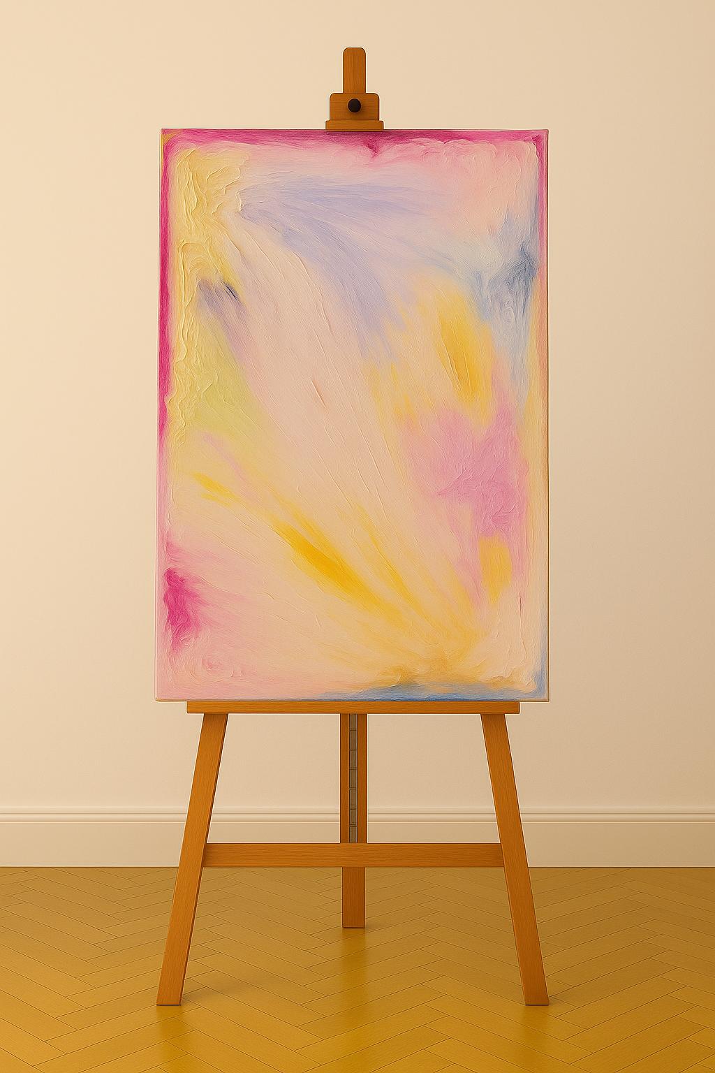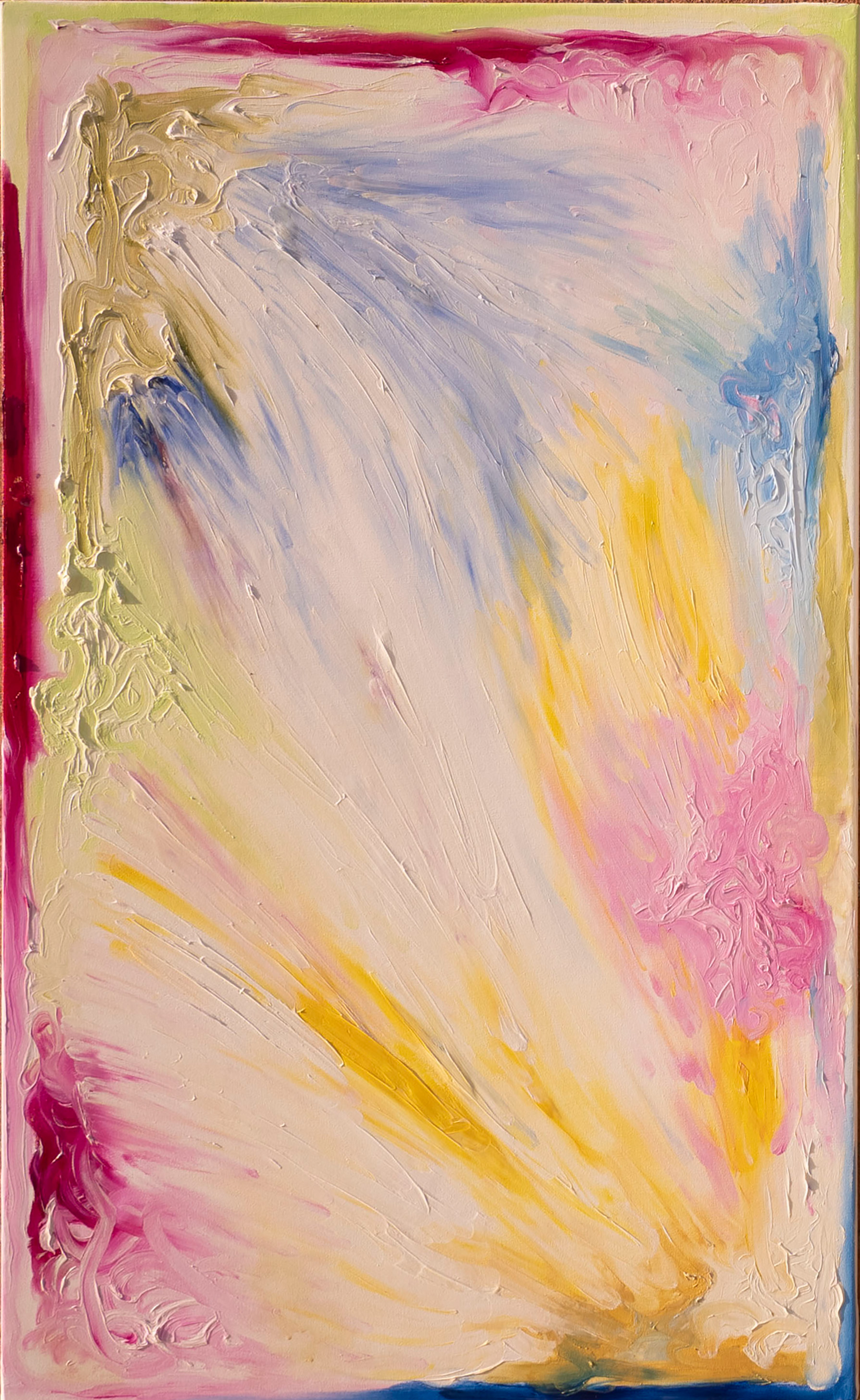 L’opera rappresenta attraverso l’esplosione dei colori morbidi e sfumati un senso di leggerezza e spiritualità. Le tonalità prevalenti sono il bianco, il giallo, il rosa e il blu, distribuite in pennellate dinamiche che si muovono in armonia. Gli elementi cromatici si fondono e si sovrappongono, creando un effetto etereo che richiama la delicatezza e la profondità dell'anima ‘Incontri‘. Una composizione astratta, priva di contorni definiti che lascia spazio all'interpretazione personale, suggerisce una connessione con l'interiorità e il flusso delle emozioni. L'energia trasmessa è positiva e riflessiva, un vero invito a esplorare la propria essenza.